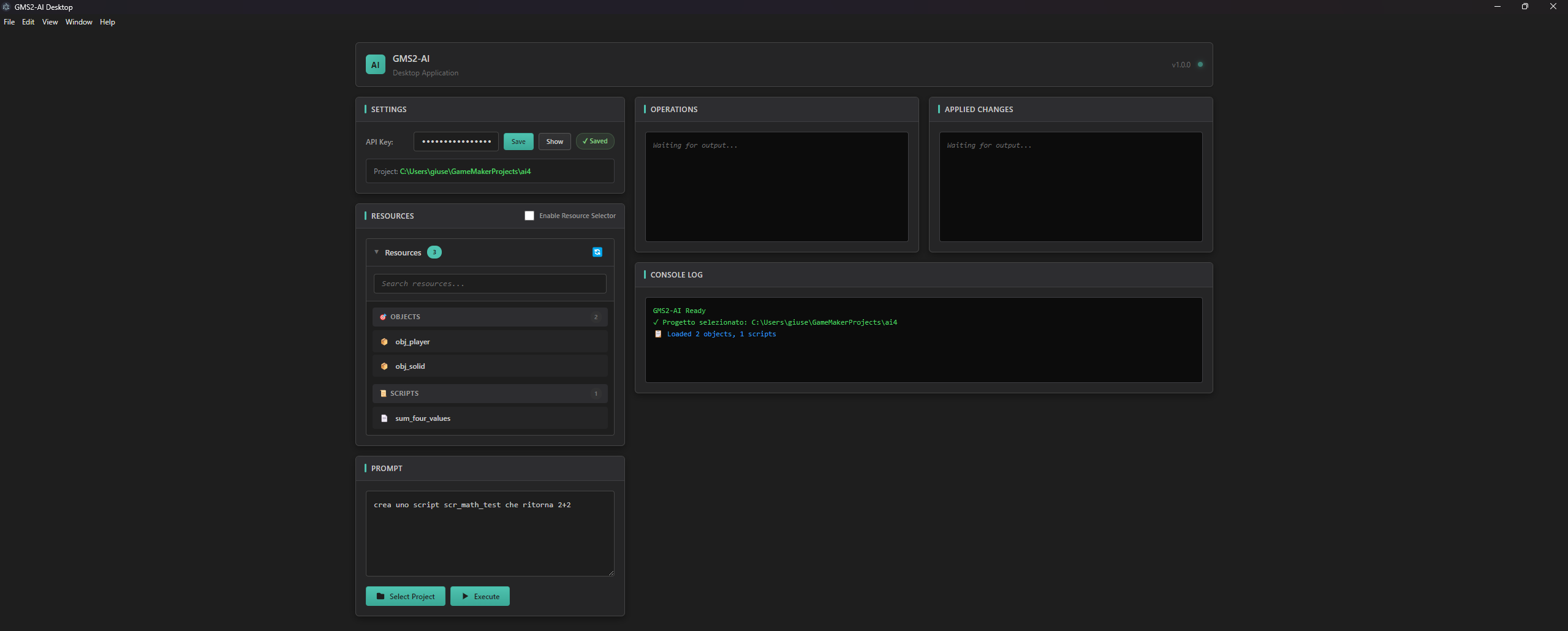 GMS2-AI is a desktop application that uses AI to generate and modify GameMaker assets directly in your project. You write a prompt in English or Italian, and the tool creates fully functional objects, scripts, and rooms — or modifies existing ones.